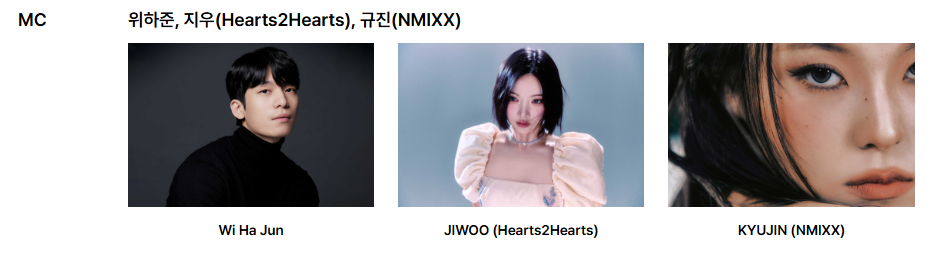 현재 공개된 출연진으로는 엔씨티 위시(NCT WISH), 더보이즈(THE BOYZ), 엔싸인(n.SSign)이 있으며, 추가 출연진은 추후 발표될 예정입니다.