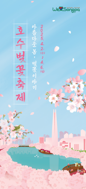 - 벚꽃축제 공연: 4월 3일(목)부터 5일(토)까지 14:00~19:00 동호 수변무대에서 송파구립합창단, 송파구립실버악단, 한예종 버스킹 등 다양한 공연이 진행됩니다.