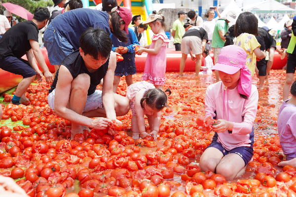 - 신선한 토마토가 가득한 풀장에서 물놀이와 함께 즐기는 특별한 체험